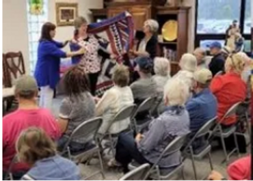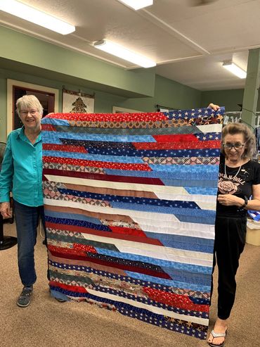 The Patriotic Piecers are a sub-group of the Card Tricks Chapter. They have been getting together monthly since approximately 2013 for the sole purpose of creating special quilts to honor those who have served our nation and our community with handmade quilts to express our gratitude and provide comfort and healing. So far, the Patriotic Piecers have presented more than 200 quilts to veterans, active military, and first responders who are members of the White Mountain Community..
